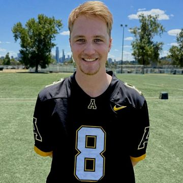 VFL-athlete (level below AFL) who possesses quick feet and a powerful kick (PB of 47/4.81 rollout, 48/5.1 spiral). Available June '26 for predominantly rollouts with the right coach.